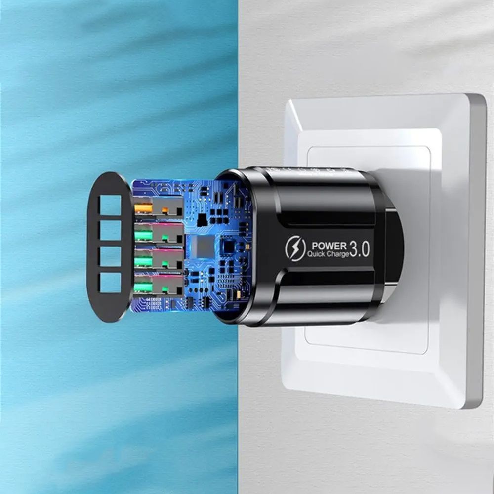 This multi-port USB wall charger is reliable and meets expectations. The three ports charge my devices at a standard pace, while the last port delivers fast charging for my phone and tablet. It's especially useful for travel when multiple devices need simultaneous charging. However, the bright lights can be a bit bothersome at night.