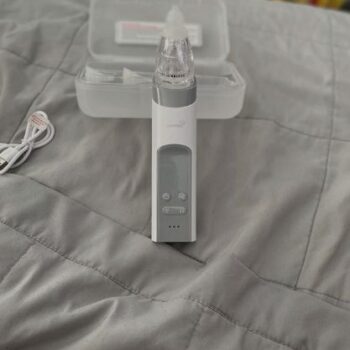 This nasal aspirator is a must-have for moms of little ones. It features lights and sounds to make the process more pleasant for tiny noses. The suction is smooth and gentle, efficiently getting the job done. The components are easy to clean, it maintains consistent charging, and comes in an organized case. Highly recommended!