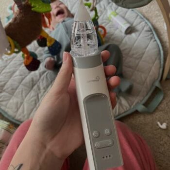 I adore this device. It offers different suction settings, and we've found that level 2 works perfectly for our 1-month-old. It suctions out snot much more efficiently than the bulb, and you can see the contents inside the device, making it easy to clean. It's a solid 10/10, and I'll always consider it a great baby shower gift.