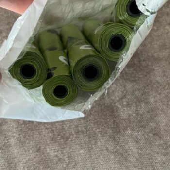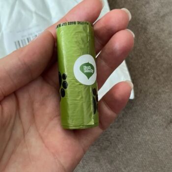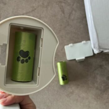 It's convenient and comes with a generous supply of doggy bag rolls that can line the container portion of the device, which is great.
