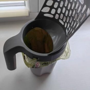I love this scooper! It's great for scooping waste and having it go directly into the bag without any additional hassle. Just be sure to shake out any excess litter before placing the waste in the bag to avoid losing litter.