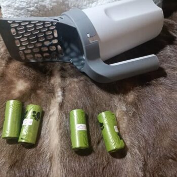 I adored this product. It's fantastic for quickly cleaning your litter box every day. It's super easy to use, comes with plenty of bags to last a long time, and makes scooping a breeze. It's also a cinch to dispose of the bag once you tie it off.