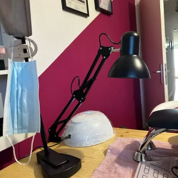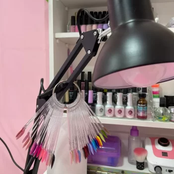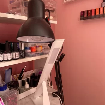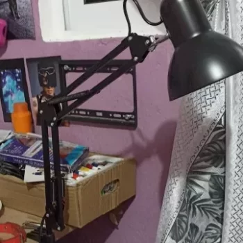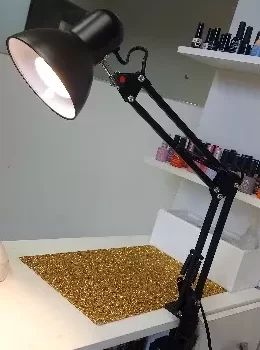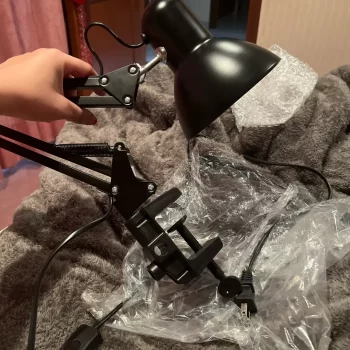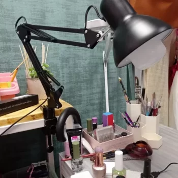 As a hobbyist and side hustler making press-on nail sets, I needed a good, adjustable lamp for my work area. I appreciate that it's not bulky and has a clamp, allowing me to use ample table space for all my supplies. After reading reviews about the power switch on the cord, I ordered LED bulbs controllable via my phone or remote, hiding the cord behind my desk while still easily managing on/off, warmth, and brightness.