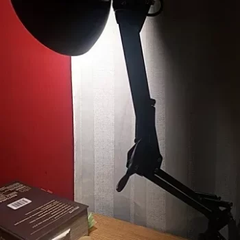 Been using this lamp for a while now. I like it. The spring doesn’t lose strength after a while like some other ones. I use it in the back room, and I don’t like having lights shine directly on me. This was able to turn complete 180 with no problem, so it’s great.