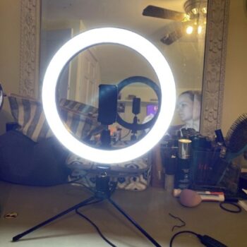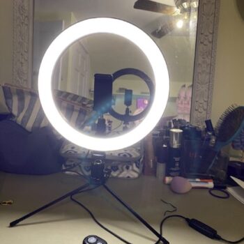 Flexibility is ahead of all other ring light sets. Basically you can put it everywhere like the floor, desktop or handbag when you’re not using it. It’s the ultimate all-in-one of ring lights.During this pandemic,I always do a lot of videoconferencing.I face the challenge of lighting at home.So I decided to order this ring light,which is a great purchase.