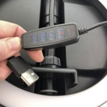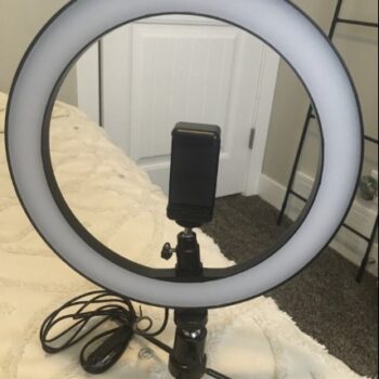 This is the perfect little light ring! My others are too big for counter top filming like for face washing videos. I mounted this one to the mirror in my spare bathroom using command strips. That way I can take it on and off as needed. It’s big enough for my phone to fit in the center and bright enough for what I need it to do! Great price!