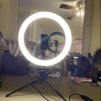 This is a nice little ring light for doing makeup or recording videos sitting down or at a table top! Also travel friendly. It’s a great size. Highly recommended!