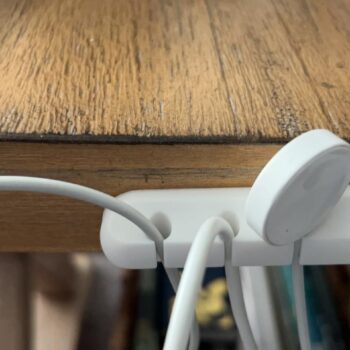 This has been a simple but effective tool to prevent cords from falling behind my nightstand when unplugging my iPad, iPhone, AirPods, and Apple Watch.