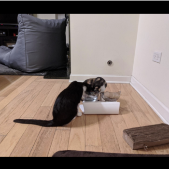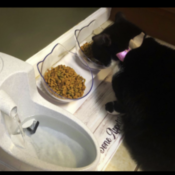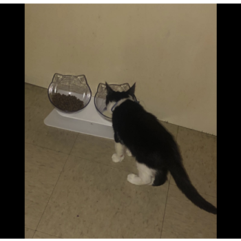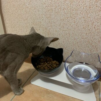 It’s definitely very cute and the cats can easily eat out of it.