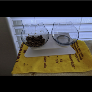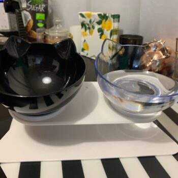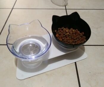 This is adorable and came super fast - my cats decided they won't eat out of the food bowl we've had for years, so I ordered this! My cats are pukers so hopefully the elevated and tilted bowls help. I like that the bowls are small so food doesn't go bad sitting out, and they "screw in" to the base so they don't knock over, and it's just overall adorable!