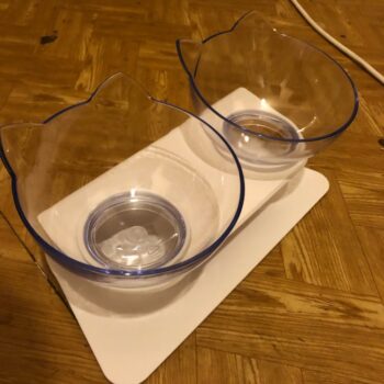 The product is very light so when the bowls are almost empty my kitties push the bowls across my hardwood floor. I’m going to have to buy a mat to put under the product. Hopefully that will keep it from sliding. On a positive note, my kitties do like eating out of the bowls.