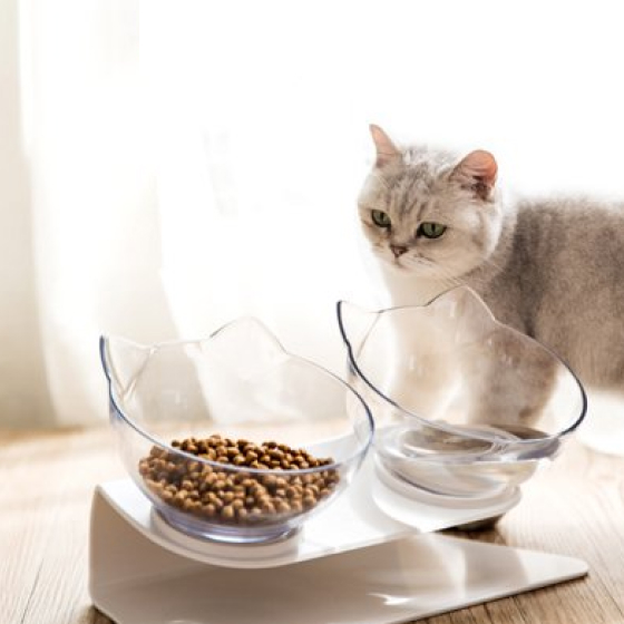 I have an elderly cat and thought that the slight tilt and elevation of these bowls would be less strain on her. It's super cute and she does seem to be doing well with it. The only thing I would mention is that making the bowls a little more easily removable from the base may be helpful, especially when refilling the water bowl. Overall, glad I purchased it.