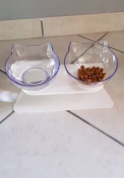 This pet feeder is very small and cute, and it is very practical and durable. The elevated bowl is designed to release pressure from your cat's neck, making him more comfortable and happy while enjoying his food. At least, for my two black kittens it works.