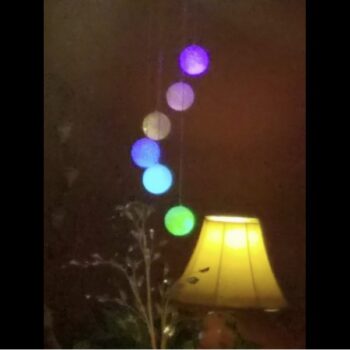 Love this crystal ball outdoor decoration, though they are not chimes. Much smaller than they appear in photos; we like the actual size better.